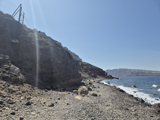 Read moreQuesta caletta si trova a nord dell'isola, sotto Oia. E' costituita principalmente da grossi ciottoli, presenti anche all'interno dell'acqua, quindi consiglio di indossare delle scarpette da mare, utili anche per arrivarci visto che dal parcheggio dovete percorrere un ripido sentiero polveroso. La spiaggia non è attrezzata, troverete solo un bar in cima, al livello del parcheggio, ma non potrete noleggiare lettini o ombrelloni. Suggerisco anche un materassino se desiderate sdraiarvi per terra, soprattutto se volete sostare sul lato destro che è più appartato e tranquillo, ma anche più ciottoloso. E' una caletta sicuramente da provare se desiderate godervi una giornata lontani dalla folla e in più potrete godere del tramonto direttamente...