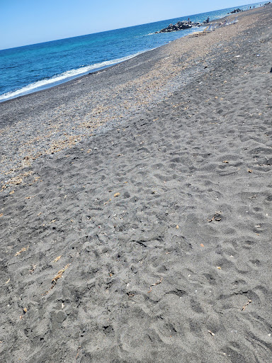 Read moreThis is such a different experience this beach has black sand, make sure to grab some pumice stone it's said to bring good luck. I brought home 2 small rocks. The beach does not have alot open in early April this is due to when Greece Easter falls though so if it's after most things should be open but if it's later like this year your food and stores will be limited. Beware the prices are insane here with exception of some gift stores. But for 2 kabobs aka Soulvaki at a restaurant it was €16. I soon learned that was crazy. If you have never seen a black sand beach I highly reccomend this. If this review helped you at all please mark as helpful and follow me for more reviews...