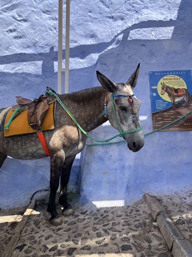 Your options: a) skip the stairs unless you’re chasing Instagram glory (there's nothing new or exceptional to see down by the port) b) ride a donkey if you want to feel guilty, or c) take the cable car and save...