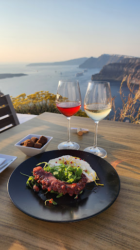 Read moreSet on the cliffs with a view of Oia in the distance, Venesantos Winery was our next stop. We reserved a wine tour and tasting, which cost €12 and €25+, respectively. We arrived early, so we got to enjoy the views from the entrance.