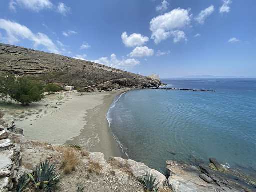 This was our favourite beach during our stay in Tinos. It was really charming in a small bay with a house that overlooks the Aegean sea and a few tamarisk trees where you can protect yourself. Careful though! One sand lizard bit my finger, not sure if he wanted to play or what. Nothing happened, I just couldn't enjoy my siesta after. The sea is beautiful and sheltered from the wind. Still sand flies around. Gorgeous spot to...