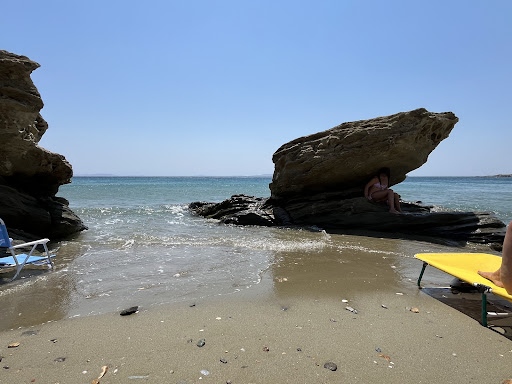 Nice sandy and clean beach and waters! It's also shallow so the kids can enjoy it a lot! There are beach bars and a tavern so multiple options to drink and it. It's close to chora and easily accessible by car. There are also a few trees offering natural shadow right next to the beach. Unfortunately if strong north wind is blowing, then you actually hurt by the sand that it's hitting you and it's not...