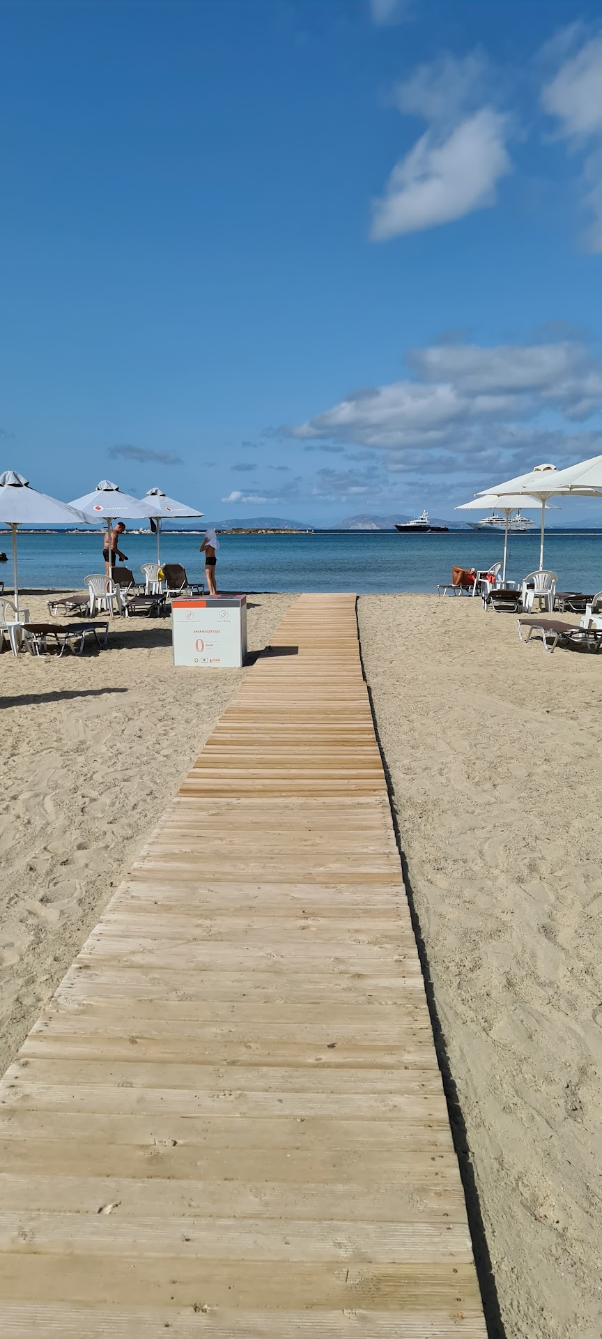 -sunbeds could be cleaner. A beach towel. A large one. Is a must. The water is not very deep and you have to walk almost 100m in to reach 1.5-1.7m depth. It is good for kids but can get anoying for those that want to swim