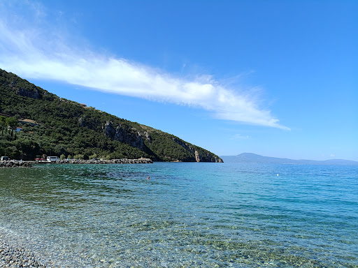 Read moreNice small and quiet beach with crystal clear water (swimming shoes recommended because of the pebble stones ) and three traditional taverns behind. Parasols and sunbeds available for free, if you order drinks while your stay. The taverns offer delicious traditional greek food and fresh fish. Very...