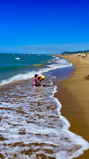 I grow up in this beach which os endless in any direction and I have great memories. This beach it contains anything you want from one serious beach. Sand all over the place which not make your feet to bleed. Instead this beach is great to play any kind ball game (if there is people around), you can making jogging or light walk, you can enter and swim without fear cause the water is swallow and general safe. The water has not the greatest colour but is clean and very warm. I prefer it a bit colder but if you enter a bit more deeper you will get colder water. Overall this beach offer you everything. Is very big and everyone can find place to sit or play with friends. Also contain one great lifeguard which love her job. Always there on guard, clean the beach from dirt etc. Safe to bring...