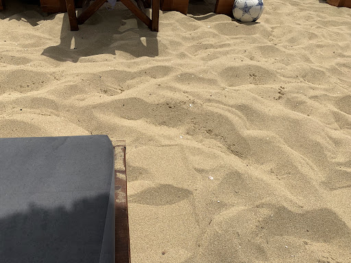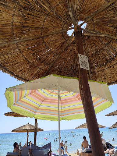 we read a lot of reviews (even the negative ones) but decided to still come because we were recommended this spot by a greek local. also, the internet mentioned this as one of the best beaches on mainland greece. we thought the music was great. it wasn’t too loud at all, actually pleasant. i would recommend getting a spot farther away from it if you feel like it’s too loud. parking was free (but we parked kinda on the side of the road technically) and the service was kind and quick. the food was great. we got the special pizza and the classic burger. the pizzas cheese pull was insane, someone saw our pizza and asked what it was so they could order it too lol. water is perfect temp, sand is hot. we came and sat at one of the umbrellas and no one told us we had to pay (but to be fair we weren’t really sitting there, we left our stuff and swam in the water). we came to the restaurant and ordered there and got food relatively quickly. we didn’t have any of the issues mentioned in the negative comments, maybe it was just a bad day idk. we had a great time. def a great beach for children.