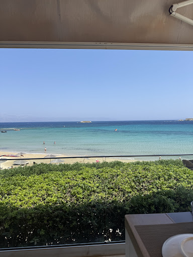 Great sandy beach with plenty of water sport going in. 20€ for an umbrella and two beds ! Service from the hotel for drinks and you can go up to their bar for food. Great option on Paros if you want to avoid the trendy...
