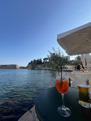 Read moreThe beach is great, wonderful for a swim next to the city center. The water is clean, staircases make the access easy and there are showers too. I can recommend this place for a dip. The beach club on the right hand side is not my cup of tea, the vibe overall is not good and the prices are too high. The staff seemed to be very stressed, there were tensions between them that you as guest can feel and see. Not the vibes Iâm looking for when wanting to relax and have...