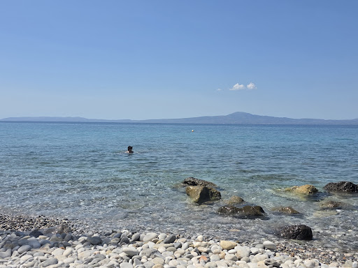Read moreSpiaggia di sassi meravigliosa, riflessi e colori davvero stupendi. Lo stabilimento mette a disposizioni lettini e ombrelloni (ma non sono tantissimi, conviene arrivare in spiaggia intorno alle 9, o comunque prima delle 10, almeno nei giorni festivi), e si deve pagare solo la consumazione. Inoltre ci sono vari tavolini dove poter mangiare o prendere qualcosa da bere se si vuol star seduti. Il servizio quando c'è molta gente è un po' lento, come in tutta la Grecia, ma sono tutti molto gentili e disponibili. Spiaggia frequentata ma non troppo affollata, decisamente...