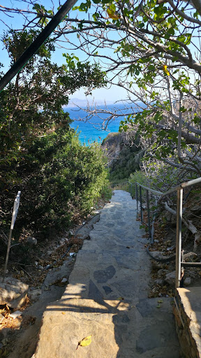 Read moreThis beach is nice, but ... the beautiful turquoise water with sandy bottom of right-enough sloping is very nice. The beach is accessible only by a very narrow staircase of 183 steps, with broken railings and no shade. Its very demanding for anyone other than sporty people, to climb it twice a day. At the beach, when it's a bit more windy, waves take all the sand from the beach and that beach is just pebbles. Not very comfortable and very hard to walk on. Also, when its windy, there is a lot of trash in the water. Swimming between plastic bags is just gross. The sun beds, 10€ for set, are not in the good shape, some of them are actually painful to lay on, and they are very soon taken. You need to secure your set around 9:30, otherwise you don't get...