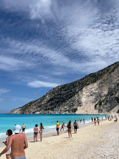 One of the most beautiful beaches I have ever seen. There are two elements important to your beach experience in this case: the nature and the man. The nature has given this beauty on the earth and dictates the weather which is very important when you visit this beach. So, before you go, check the weather forecast. You should choose a calm sunny day, without wind. Otherwise, it will be a real problem with big vawes, so swimming will be impossible. Also, the magnificent color of the water will be distorted for pictures from close distance. The water is incredibly clear. A little colder than on other beaches. There is stong underwater current, so be careful if you wish to go little further from the shore. The beach has a sandy part which transforms in pebbles near the water. There is enough place for more than 2-3000 visitors. The beach is rather big. The second important factor is the men: what has been done (or not) in order to avoid your visit becomeing a really bad memory. Car is essential. For those bike friendly, I warmly recommend using a bike if the distance alows it. The timing is not less important. If you decide to go, do it as earlyer as you can. It is the best to arrive at least at 8 to 9 o'clock in the morning. Afterwards, a big traffic jam occurs, leaving you to the mercy of organized groups of tourists for parking near the beach. The big issue here is the non organized free parking attended from hundreds of cars. The hill is very steep, so if you arrive later, you should walk uphill in the strong sun for a kilometer or more. It is a very bad and dangerous experience. There is no single police person authorized to make the situation bearable. The next issue are the unusable public toilets, so consider it in your plans. The next issue is that there is no store. Just a beach caffee, which is a tiny wooden barrack with no capacity for serving souch a crowd. It is better to have prepaired the drinks and food you will need in advance. There are sunbeds and umbrellas to rent, but you can set up your own for free. There is a shower too. All these challenges are nothing for the real beach lovers, because I am one of them, so I tried it this morning. Here is a piece of beach lovers heaven (picture of Myrthos...