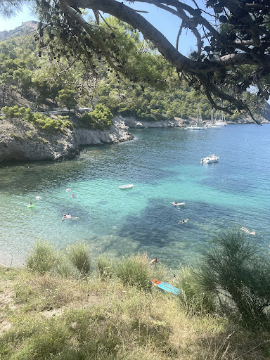 I believe this review is for the main town beach, and is just under a different name than Assos beach, at least with the photos. By the time we got here at around 2PM, all of the sunbeds were taken but we were able to sit on the shaded stoop by one of the private villas. This beach is the most popular, but when we swam around the cove we saw several other beaches that I don't see mapped. One is by the main parking lot and looked to have a lot more shade, even with trees. There is one more almost across from this beach that also looked quite secluded and looked to have stairs that led up to the street, but since we swam over I couldn't see where the entrance was. The water was fine but definitely not as clear as other beaches we've been to. Lots of boats around so might be more polluted too, especially with the small size of the water that's by the shore. Some of the rocks have sea urchins, be careful! Lovely view of the town...