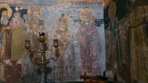 Изнад Генадијевог гроба се налази фреска цара Душана са сином и женом. Блеђа је од осталих јер су је калуђери прекречили пре 125 година. Уплашили су се јер је Бранислав Нушић долазио да је слика. Мислили су да ће Србија да тражи Сер кад победи Турке пошто смо нешто раније отворили српску школу у граду. Фреска је пре пар година откривена поново