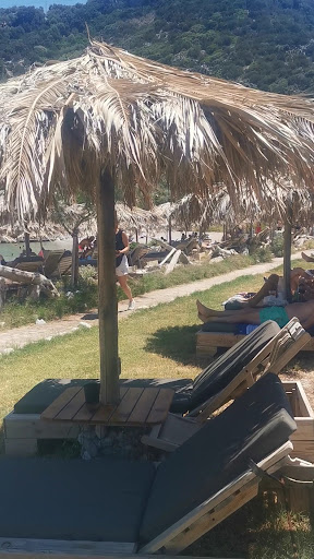 Very beautiful setting and the most beautifully set up beach bar I've seen on the island. Nice stuff. I didn't like the loud music (too loud) and the choice (Abba in a loop or 80s and 90s music, nothing new). It makes people nostalgic. I would have appreciated a much younger summer vibe if I am supposed to listen to some loud music anyway. The water was colder than in other parts (Kastani, for instance) and because of the barrier they put at the end of the bay, there is no real cleaning of the water. Actually you can see the solar cream in water, it is hardly washed away by the waves/currents, which was a minus for us. The kids made some snorkeling but they complained about the "foggy" water because of the solar cream from the people. Really unpleasant! Also, you have the feeling of being closed in a large pool. I would go again only for the scenery and for the beautifully decorated beach bar. Even the toilets are very clean, perfumed,...