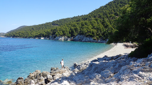 You arrive in the morning, not later than 10am, because you know it’s Mamma Mia beach, there will be people. Pristine waters, beautiful landscape, nice deck chairs. So far 5 of 5. We were 3 persons, so we ask for additional sunbed. 5 euro per sunbed, 15 euros for all of them. Fixed charge, no consumption. Nevertheless we order frape coffee. The bill exceeds 30 euro, this is just for start. Frape comes without free water as is the standard in many other Greek beaches. Small water = 1 euro. Evaluation goes to 4 of 5 stars. In the meantime long line of cars and buses continue arriving. Two tourists cruise boats land more than 100 additional people on beach. A number of catamarans and yachts also dock in the bay. Very soon every free spot on the beach is taken by people, everyone shouting, babies crying. Now evaluation is 3 of 5. In front of us a family with two small children has taken a standard set, the father has pinned an additional umbrella in our feet. Beside us is a family of six(mother, father, 2 small kids, grandmother and grandfather) and a dog occupying one standard set. Baby crying on my ear, daughter lying on the ground, 15 cm from me. Water is no longer pristine, but muddy at the beginning from so many people and boats throwing waste in sea. Toilets at the cafe get overused. The Kastani cafe decides it is the right moment to start the DJ session from the loudspeakers. 2 out of 5. This is how people have managed to downgrade otherwise a nice beach out...