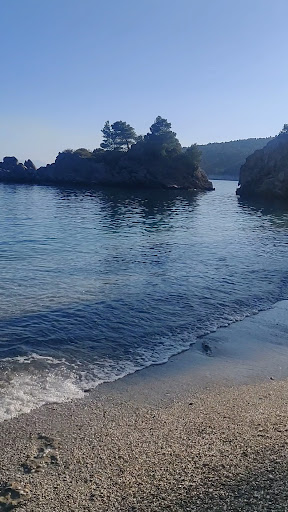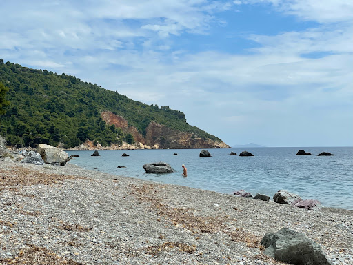The beach is nothing special. You have to get there at 9 o'clock at the latest if you want to park your car. If you're coming by bus, it's about a 10/15 minute walk untill the part where the cars are parked, and than another 10/15 minutes from there until the beach. You first go down some stairs, were you also have a ramp so if you have a stroller you can get it down to Stafilos beach easily but it would be hard to get it to Velanio beach as you have to climb a small hill that is unpaved to get to the beach. On the beach there is a bar where you can rent sunbeds, a part where you can put your own umbrella, and lastly behind a couple of big rocks there is a nudist part. It's fairly windy there, the beach is with pebbles as is the seabed. All in all I...