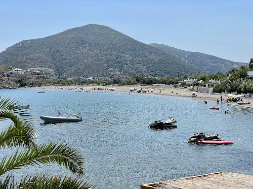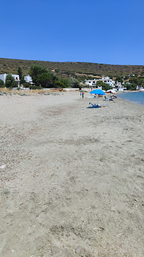 Clean and peaceful beautiful beach. Surrounded by mountains. Soft sand and very nice access to the sea without stones or rocks. Perfect for small kids. Sometimes wind brings some seaweed but it's only temporary. Nice bar with coffee snacks and wine for only 1euro! You have to bring your own sunbeds...