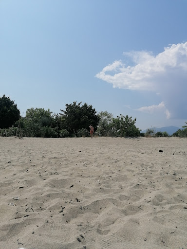 Amazing beach, long and wide, sandy. Shallow water for many meters and only sand in the water. Not crowded, many locals here. Nice view of the surrounding mountains and hills. There are no amenities however, except for a beach sjower and changing cabin. You can have to bring your own stuff - and definitely worth it. Very few people on the beach in July, even during weekends. Plenty of space for everyone and quiet enough to actually hear the sea. Walking on the beach you reach the river Pinios delta, as it flows into the sea - amazing view...