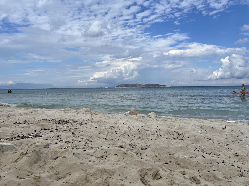 The beach is great , nice soft sand. The sea awesome, shallow, easy, no stones. Bit the beach bar… OMG We arrived at 11:40 while 2/3 of the umbrellas were still empty. There were two guys serving. After two requests to order (to which we received the answer “coming in a minute”) finally we managed to order at 12:20 There is no toilet!!! Do your needs in the sea or behind the bushes!!!!!!! About food we went to the bar to place the order. It came indeed fast and the guy upon delivering the food asked to be paid immediately for the food and the coffees we took earlier… Well ok lets pay. No card payment possible! Really the law in Greece that obliges card payment everywhere apparently has not reached this place… We paid and… no receipt!!! Another law in Greece that clearly states the customer has no obligation to pay unless a receipt is issued…
