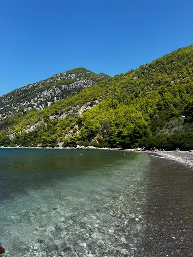 Σαν παραλία είναι πάρα πολύ όμορφη, δεν είναι εύκολα προσβάσιμη ειδικά αν έχει κάποιος μωρό... Δεν συνιστάται για ανθρώπους με αναπηρικό αμαξίδιο!!!Έχει αρκετές σκάλες στο ανέβα κατέβα και περνάς μέσα από ένα μαγαζί για να πας. Το όμορφο είναι ότι υπάρχουν και τρεχούμενα νερά αλλά λίγο επικίνδυνο γιατί μπορεί κάποιος να γλιστρήσει στις σκάλες. Έχει πολύ όμορφα νερά και η ακτή ιδιαίτερη συν φανταστικό καταπράσινο τοπίο που δεν το συναντάς εύκολα! Καλό είναι πριν πάτε να συμβουλευτείτε το Μετεο γιατί αν έχει καιρό δεν λέει καθόλου και είναι μακρινή διαδρομή με στροφές... Ένα αρνητικό είναι το θέμα πάρκινγκ, υπάρχει ενα μικρό ανοιχτό κομμάτι δρόμου όπου παρκάρεις αν βρεις! Το πιο αρνητικό για μένα είναι ότι το μαγαζί εκεί πέρα που έχει ένα πάρκινγκ επίσης μικρό αλλά πάρκινγκ, δεν δέχεται να μπεις να παρκάρεις εάν δεν κάνεις κάποια κατανάλωση από το μπαρ του, σημειωτέον ότι η παραλία με το που περνάς το μαγαζί και τις σκάλες είναι ανοργάνωτη και σε κάποια σημεία έχει σκουπίδια, οπότε δεν είναι στη δικαιοδοσία του μαγαζιού. Και για να πας στην παραλία από το μαγαζί πρέπει να κατέβεις τουλάχιστον είκοσι και βάλε σκαλιά, είναι όλο τυφλό σημείο και δεν μπορείς να αφήσεις τα προσωπικά σου αντικείμενα τόσο εκτεθειμένα και καταλήγεις να τα πάρεις μαζί σου. Αλλά βέβαια άμα τους πεις ότι θα πάρεις έστω ένα μπουκαλάκι νερό από το μαγαζί τους σε αφήνουν να παρκάρεις και ας μην κάτσεις στο μαγαζί απλά να...