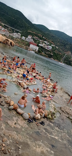 It depends on what you expect. From the entrance to the village, a very long but narrow beach begins, somewhere it breaks. It's mixed with sand and rocks, but it's generally for shoes. The sea is clean, but with small stones. There are alternating places where children jump, then there is an area with mostly pensioners. Somewhere there are umbrellas and deckchairs, but they are few. The street passes above, it is noisy with cars and restaurants. Walkers are also watching you. The view is very beautiful! It ends with the thermal springs - only stones, healing, hot water and a crowd of many people. Fans of long, sandy, wide and quiet beaches will not like it. Otherwise, the place is...