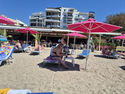 They have free umbrellas, showers, taps to clean feet and changing rooms (all free). Beach bar...