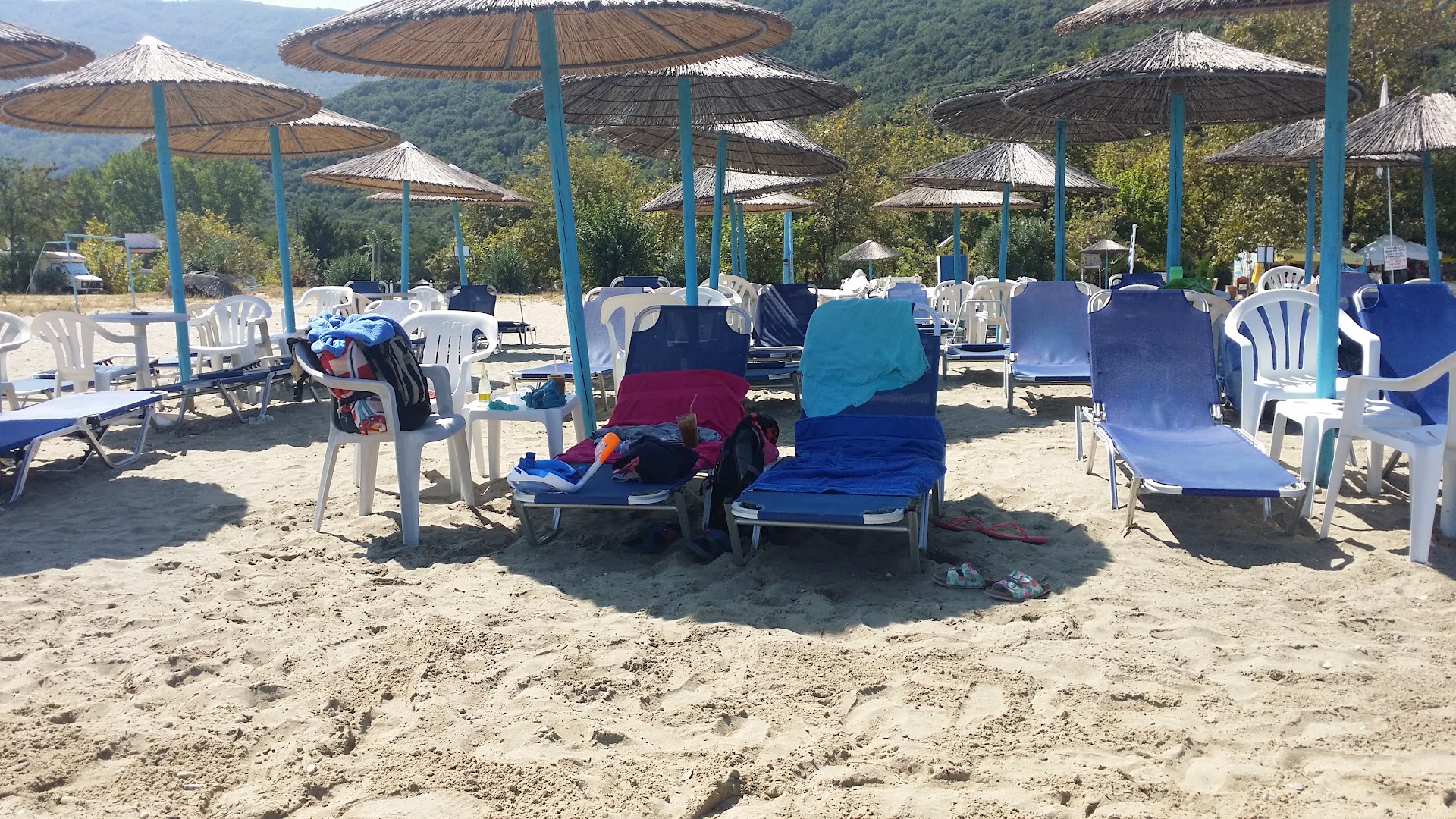 Read moreNice sandy beach, with an pebbles entrance to sea. First it is very deep and after deep belt there is water up to knees, so you can not swimm, but you can walk. There are two types of sunbeds and are ok. Waiters are ok, prepare for bellow average coffee you will not drink,but sometines some of them make an average good coffee. They offer also smoothies, but they never have them ?!? Only ordinary juices , and something like banana smoothie. Overall it is better choice to choose some other...