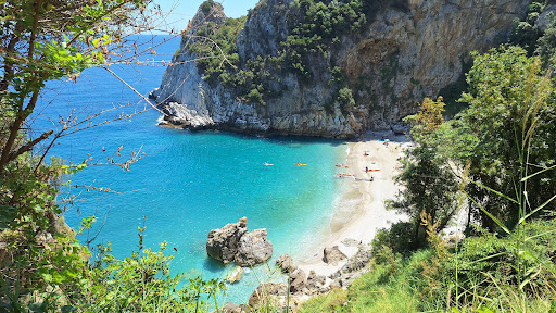 OK, with over 1.6k, 5-star reviews, I'm not reinventing the wheel saying that the beach is stunning and unique, it absolutely IS 🏖️ BUT, let's talk LOGISTICS. It's not like the rest of Pilio is like Autobahn, but beware of the emotional damage that driving down to the "parking lot" of this beach is ought to inflict in your car 🥴 By "parking lot" is a limited "space" for about 10 cars, where in some of these "spaces", cars are one misstep away from tumbling into the abyss 💀 Don't be that car! Now ONCE you park, THEN let Dante's 7th Circle of Cardio Hell begin on this sadistically designed military bootcamp trail, disguised as a beautiful destination for rest & relaxation ☀️ To whoever here writes "it's a short walk", sure, convincing and bravo, you do CrossFit for breakfast and you're cool. Reality: you HIKE. And you gotta do that down a steep, rocky, knee-destroying trail carved by centaurs in 300 BC and never maintained since. 🚧 There are “stairs,” sure - if by stairs you mean jagged stones and slippery death. It's not "recommended" to get there on sneakers. It's a choice of whether you gonna see your loved ones again 🫂 Birkenstocks are cool, we get it, but a torn ACL is not, trust me ✌️ Ohh and keep in mind that while hiking, you need to be loaded up like a Santorini Donkey since it's one of the few pure beaches with no bar or any kind of infrastructure. Which is generally amazing. So gear up with your umbrella, your bag and your ice box, and good luck 🤞 The place is rewarding. But rewards come in different shapes & figures, so a defibrillator in the trunk of the car, might not be a bad idea, especially for the older tourists that somehow think that hiking this trail of despair, should be done between 1pm & 5pm under 38°C. Guys, c'mon. Work smart, not hard 😉 To the rest of you CrossFit champs, good luck ! IF, you make it, you will not wanna leave. Quite...