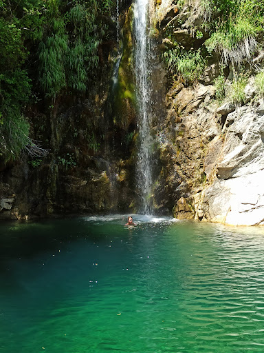 Read moreA fair walk downhill (25 mins) to get to the waterfall and a slow walk back up but totally worth it. The water is very clean and quite cold and it is difficult to resist a dip when the sun is high. (we were told it is around 6 degrees- I managed a swim and I a bit of a wuss with the cold). There is a deep, main pool under the waterfall and some smaller, shallower places downstream. A wooden walkway, benches and a table have been built around the main pool so you can sit and relax if you don't fancy trying the water. The path is well maintained and there are built steps in the trickiest places though I would not recommend it to anyone with...