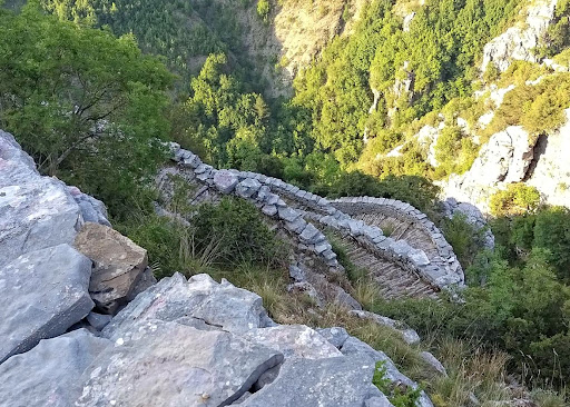 Skala Vradeto, or Vradeto steps, is an amazingly beautiful site. These spectacular series of stairs, was made by fantastic handicraft, and it is a part of a path that connects the two villages - Kapesoto and Vradeto. The panoramic view of the entire area, including the southern part of Vikos Gorge that is seen from there is simply stunning!! The stairs are dated to the beginning of the 18th century and it took 20 years to build them. They cover an altitude difference of 250m and there are around 1100 steps. The path was designed to contain three lanes, one lane (with black stones) for animals and two lanes with white stones, for people. The width was calculated precisely so that the animals would be able to turn along with their massive load. At the bottom of the gorge, at the foot of the steps, you will find two ancient stone bridges, the first and the second Skala Vradeto bridges, that are distant 80m one from the other. The trail and especially the so impressive Skala Vradeto steps, are considered as a national historic monument and reveal the heroism and the vision of the local residents who lived here over two...