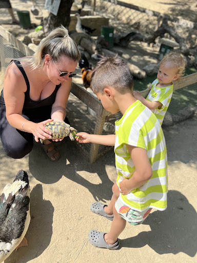 Of all the things the island has to offer, a miniature zoo was not something I expected, yet gladly embraced. The place is fantastic, the animals are a pure joy, well fed, well taken care-of, super curious and friendly. This and to mention the farm is in the middle of an olive tree plantation which make the surroundings all-the-more surreal. Just as you enter, a huge flock of hens, roosters, ducks, geese and goats storm you. The entrance btw is 6 euro and the neat part is you can feed the animals. corn grains, some carrots, lettuce and some ollive branches will hold you back a measle 2euro. A bargain, if you ask me but beware! once the animals figure out you have food in your hands, you are an instant magnet! :) I held olive branches and cute little goats kept following me for the leaves. They may seem like attention seekers but NO! They are emotional swindlers, they want the olive leaves at all costs :) My friends, they held cups with grains, and instantly became chick magnets. All-in-all it was a pleasant experience, i would definitely go again, I'd buy the animals more food, the owner is super friendly, you can serve there a drink and have something to eat and there's also playground for children. I'm not sure how well known this place is on the island, it seemed like not many know of it, but I'd classify it as a local gem. ps. THEY HAVE TURTLES. Some 23 years old, other just 1 and are the smallest, cutest most dear creatures I've seen in...