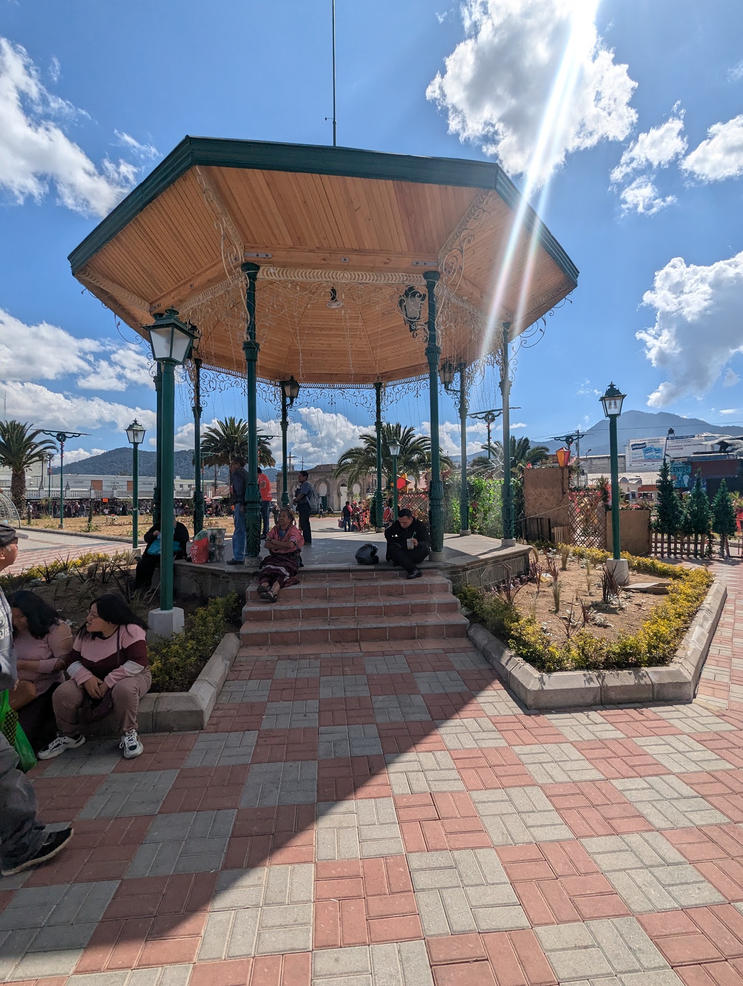 However, there are no trees to offer natural shadow during the day, in the pictures you can see people finding shadows anywhere, at the same time there are no benches so people sit anywhere. There are no trash cans in the park just one that is constantly moved, however it remains clean so far. It seems they are still working on the park so they could add benches in the future. Hopefully they add trees (or other forms to provide natural shadows), and benches in the future. Btw the buses that go to La rotonda are in one corner and in the other you can Find La democracia, so it's not as quiet as the central park, but in the middle you can find some peace and quiet also next to...