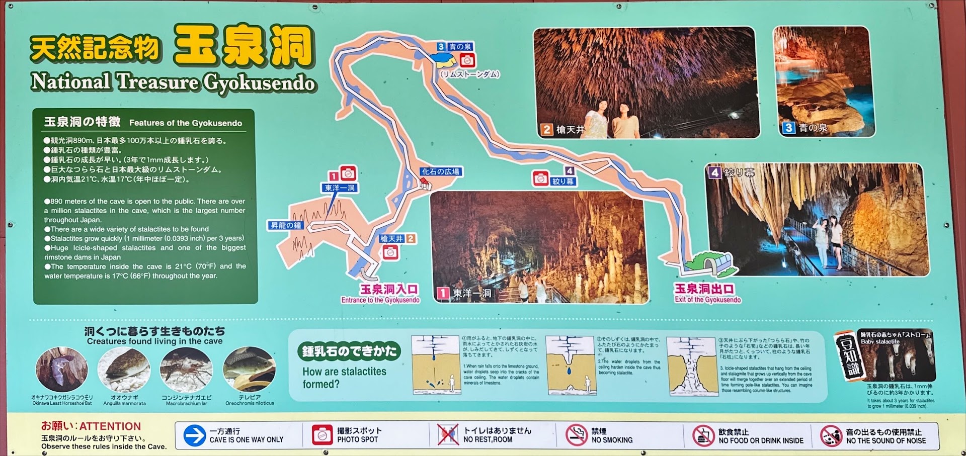 Gyokusendo cave spans an impressive five kilometers from one end to the other and showcases an array of magnificent rock formations. It has been in existence for about 300,000 years, but it wasn't until 1967 that we humans stumbled upon its beauty. When visitors enter the cave via a lengthy flight of stairs, they descend into a world that maintains a pleasant 21°C temperature all year round - a welcome escape from the heat outside. A sturdy steel walkway extends 890 meters into the cave, meandering through numerous twists, turns, inclines, and even squeezing through some narrow passages. ❤️🩷Make sure you bring a hat since the water will drop down from the ceiling rock, and enough...
