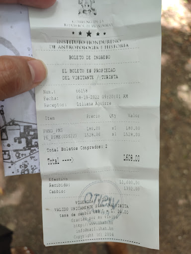 La mujer de recepción me preguntó si yo era extranjero y respondimos que sí, pregunté si había alguna diferencia y ella se quedó callada y muy seria. Nos hizo pagar 608 lempiras. Una vez pagado nos damos cuenta de que a mí por ser español me cobraron como 528 de los 608.