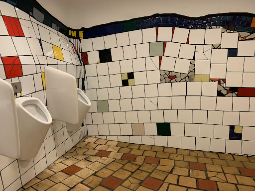 Here you can find another building with the unique Hundertwasser architectural style, featuring a bistro/coffee bar, souvenir, arts & crafts type shops and a gallery. There is also a planted forrest upon the top of the building.