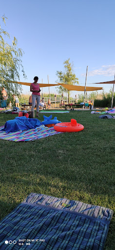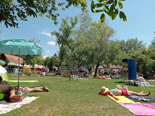 Nagy füves terület, sok fával! 2 öltözőhenger van, de van egy nagy téglaépület is. Ez fel van osztva: Baba-mama szoba Női mosdó (gyerek wc és mozgássérült wc is van, meg 2 normál wc. Sajnos a 3. ajtaja nincs meg) Férfi mosdó (nem néztem be) Zuhanyzó + öltöző (4 zuhanykabin, de nincs függöny, így csak fürdőruhában tudja magát leöblíteni az ember hideg vízzel, ill. 2db zárható öltözőfülke van.)