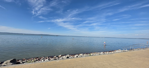 It's a nice place for relax and wet your feet in muddy-like sand under water. Biggest lake in Hungary is shallow in this place, You can go 10 meters further and it still won't go any deeper than 30-40 centimeters. Grass with clovers is nice and soft to lay on blanket and read or sunbath if You want. I was there after season so everything was closed and there was very few people around, i can't say how it looks during the season, but this...