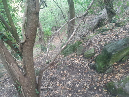 Kecskeköröm utca felől: innen egy jelöletlen, füves ösvényen felfelé haladva lehet csatlakozni a zöld sávos turistaútra.