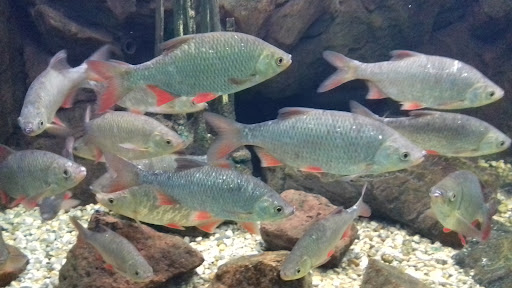Read moreUmgerechnet 10 € Eintritt für 2 Erwachsene und 2 Kinder (4 + 7 Jahre alt), ist für dieses kleine Aquarium einfach nicht gerechtfertigt. Selbst wenn man die Runde 2x macht, steht man nach 15 Minuten wieder am Eingang/ Ausgang. Wie man weiß, wachsen Fische stetig in dem, für sie vorhandenen Lebensraum, mit. Hier sind die Becken aber so klein, das die teilweise ausgewachsenen Fische definitiv zugesetzt wurden. Das grenzt schwer an Tierquälerei. Der Wels ca. 60 cm lang (250 cm möglich) ist in einem Becken untergebracht, welches gerade mal 120 cm Länge hat. Auch der Hecht ca. 70 cm lang, hat etwa die selbe Beckengröße zur Verfügung, obwohl dieser Räuber in der Natur ständig auf Beutesuche ist. Fazit: Wer sich Fische detailliert ansehen möchte, kommt hier auf seine Kosten. Schließlich sind diese Wesen auf so engstem Raum eingesperrt, das sie gar nicht...