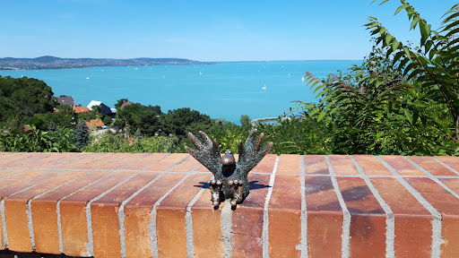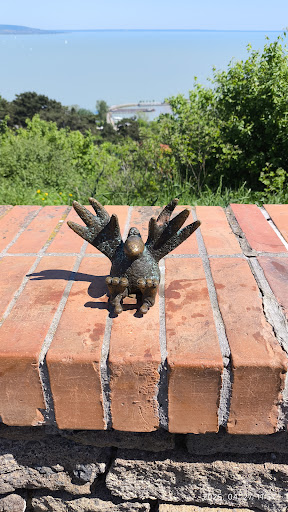 Just another very cute Kolodko mini-statue you must see if passing by Tihany. The statue is Dumpling Artur a blue fat bird from the cartoon series named Pom Pom Tales. He adores chocolate, that's why he always has a Balaton bar beside him, of course, put there by tourists. Some take it and leave...