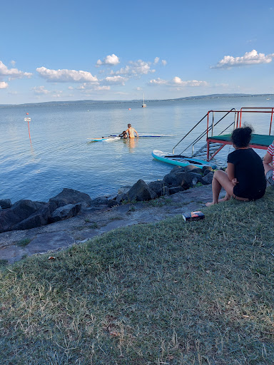 Dalo by se říct, že je to taková soukromá veřejná pláž. Návštěvníků by se dalo napočítal do 20. Takový klid a relax jsem zatím u Balatonu nezažil. Několik kabinet na převlečení, toalety velmi čisté a vstupné za pár HUF.obcerstveni je velmi omezené a platí se poutě hotové, ale svůj účel plní. Vstup do Balatonu přes žebřík a ve vide směs písku a kamínků. K tomu detske hřiště a spoustu stínu pod atromy. Dosah bez ponoření pro dospělého asi 35m. Jediný problém, pokud budete chtít navštívit tuto pláž je parkování. Možnosti jsou malé. My jsme byli ale...