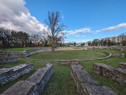 I would suggest it requires no more than a five minute visit to read the Hungarian language information board outside, and enter for a few photos. It's accessible also on foot by walking north from the Aquincum ruins and it's across the street at the Zsofia utca intersection. A small dirt lot next to the amphitheatre is available for parking, it can be accessible through an area in the crosswalk and driving along the sidewalk next to...