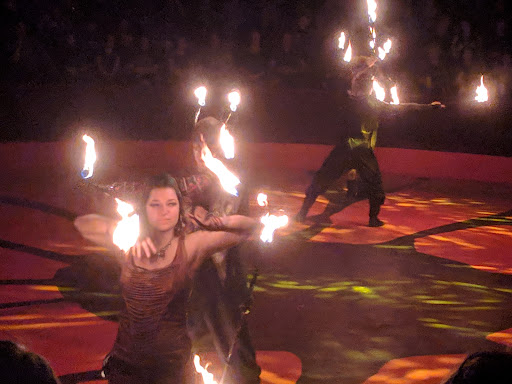 Read moreOne ring circus and vaudeville inspired skits with young and old dancing in kitschy costumery. Mainly feats of acrobatics with dance scenes harkening back to a bygone era, the show is fun and fresh with an innocence that’s hard to find in entertainment these days. The animals used in the show include less than a dozen well trained and adorable dogs under the tutelage of a highly attentive trainer and a flock of exotic bird babies who take flight under the canopy overhead before returning to the arms of their true love, a man who adores these creatures and treats them with a tenderness reserved for one’s infant children.