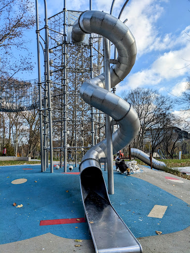 This playground was a dream!!! It's exactly the kind of playground that every child/city deserves. Lots of different areas that were appropriate for different ages, but I particularly loved how hands-on the playground was in terms of climbing and really keeping my kids busy with challenging activities. Though we visited in winter, there's also water features during summer months. If you visit Budapest with kids, a visit (or multiple visits!) here is a must. Also plenty of seating for adults, garbages in case you bring snacks, and don't forget it's just at the corner of Varosliget park, so could literally be a full day of fun. Didn't notice any bathrooms for the public, but there was a building and I did notice some membership signage, which included bathrooms...but for tourists/short term visitors, there didn't seem to be a...