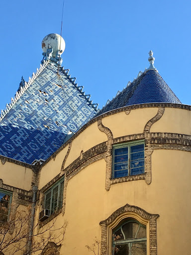 This is the Hungarian Geological Institute building, designed by the great Ödön Lechner who is credited as being the father of Hungarian Art Nouveau. He has several outstanding buildings situated around Budapest and different parts of Europe. Im not sure what the schedule is, but I was able to email then and get a tour of the building with a group of students. Our guide did a really great job and was enthusiastic about what he was showing us, even though his true passion are rocks and minerals and not architecture. I really enjoyed being shown around the building and given some of its history, they say it is one of the best preserved original structures by Lechner. You know you are getting close to the building when you look up and see the blue tile roof with the incredible world globe being held up by 4 men. Such a...