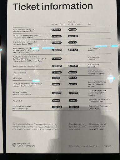 Read moreAbsolutely loved it!! I was waiting for the museum to be completed and open with great expectation and it didn't disappoint. The space is massive and contemporary, sleek, and all the content is in double language, so in English too. The architecture is unusual hence interesting and beautiful, both inside and outside. The ceramics exhibition (free of charge) is lovely, colourful and well presented, taking up two walls on the spacious floor, -2, where a ticket/information office also is. The other two are upstairs, one at each entrance. The setup actually makes the visitor stop and marvel at the artifacts, which wouldn't probably happen if they were presented in a more conventional way! Again on the ground floor, there's a city model of Budapest in 1910, with tablets that let you choose categories of buildings as you point the device to the model and the different parts of the city, which you can then choose and get to know more, and another one of the Liget Project (the renovation of the city park, which is ongoing). There are two spots where video clips are shown and you can sit, with the other visitors passing by. While you walk up and down, as the structure inside is curved as you can see it from outside, you may see the temporary exhibition spaces beneath you through glass walls and have a peak at the objects on display (for these exibitions there's a ticket, all-in costs 3000 Huf). Overall, the space flows from one side to the other with no interruptions and you feel engrossed and can interact with it, so much so that everyone was really having a good time. Bar, restaurant, book shop and ethnoshop (with various objects on sale) are all very contemporary as well. Finally the landscaped roof garden 😍. You need to climb up and down and experience the majesty of it, while you can sit around and take in the views too. It really was an amazing EXPERIENCE that I would recommend to anyone...