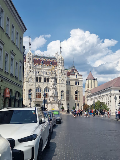 Read moreWikipédia: "A Szentháromság tér Budapest egyik legrégebbi és legszebb tere. Az I. kerületben, a Várnegyedben található. A Mátyás-templom, avagy Nagyboldogasszony-templom körüli tér a várnegyed központját alkotja. A mai tágas tér helyén a középkorban még házcsoport állt, utcákkal és sikátorokkal átszőve. Az 1686. évi ostromban a téren lévő épületek nagy részét lerombolták és a romos házakat már nem építették újra. Így alakult ki a mai tér. A tér közepére a városi tanács egy Szentháromság-oszlopot állíttatott fel, hogy emlékeztesse és megvédje a lakosságot a pestisjárványtól. Később ennek helyére került a Szentháromság-szobor, ami 15 méter magas építmény, hatszögletű obeliszk mészkőből készült, valamint szobrokkal gazdagon díszített, melyek 1,8–2,8 méter...