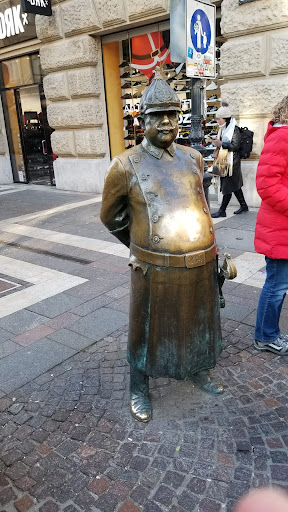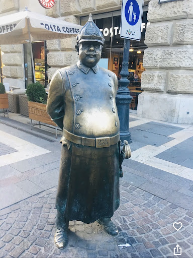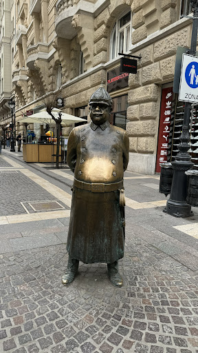 Read moreThe monument to the policeman, erected in Budapest in 2008, has already become a symbol of dedication for both locals and city guests, myself included. Situated in the Fifth District at the intersection of two streets, it stands tall amidst the cobblestone pavement, captivating attention with its majestic presence. This sculptural monument, dedicated to the guardian of law, is officially known as the Guardian of Order. Crafted from bronze, it intricately recreates the impressive details of the form and parameters of policemen from the past century. The guard's head is protected by a pointed helmet, while a curved saber hangs from his belt. Of particular note is the protruding belly of the policeman, symbolizing the solidity and seriousness required for such a position.This monument not only reflects the historical legacy of the police force but also serves as a reminder of the importance and significance of their service to society. Standing before it, I couldn't help but admire its grandeur and the symbolic significance it holds for the city of Budapest and...