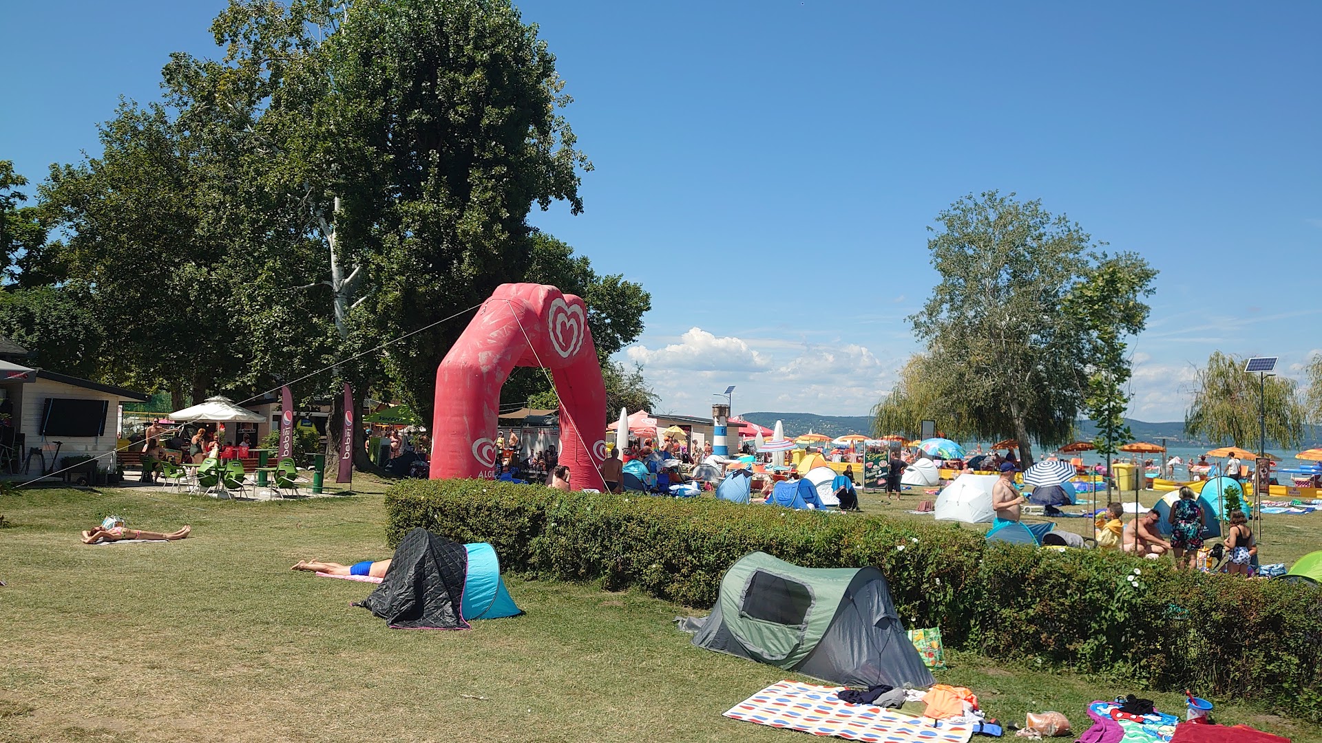 one of the best beaches at the lake. Kid friendly and large area with all amenities . HUF 800 for a daily ticket is cheap (kids and elder paying HUF 300). There is a wellness area, which actually contains a kid friendly water complex and a pool to swim. You need to pay extra but kids love it. Giant slopes are okay, but only long and straight. Nothing special. They are not too strict with the age limit. Even 5year old can go usually. Parking is free, but come early! Tip: Next to the entrance to the right, there is a small dead end street, where you can...