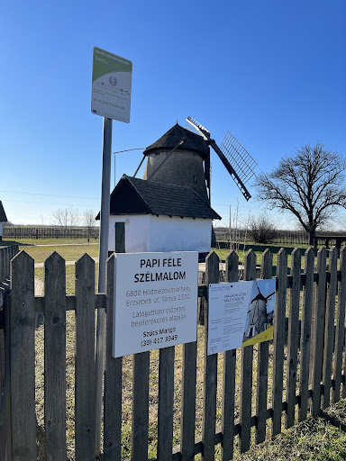 Read moreA Papi-féle szélmalmot Hódmezővásárhely központjától 12 km-re, a Békéssámson és Tótkomlós felé vezető Erzsébeti úton találjuk. A szélmalmot és a mellette álló molnárházat 1856-ban építette Csánki Bálint. 1891-ben a Papi család birtokába került. Papi Imre, aki az Erzsébeti úti szélmalom utolsó molnárja volt, egészen az 1950-es évekig ebből a tevékenységből élt. A Papi-féle szélmalmot az ország egyik legteljesebb állapotú, magyar típusú szélmalmaként tartják számon. A szélmalom a molnárházzal együtt maradt fenn, különlegességéhez tartozik még hiánytalanul megőrződött belső...